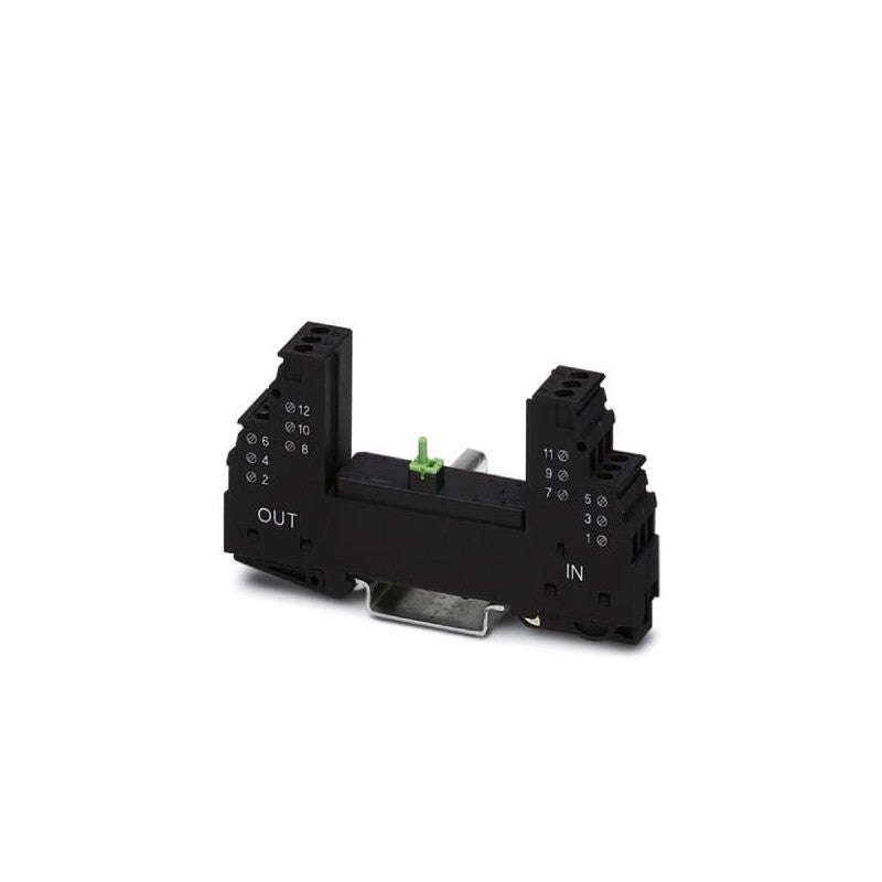 Base element for protective plug PT with protective circuit for two 2-wire floating signal circuit, bridge between the connections 3-4 (GND) and 9-10, for mounting on NS 35/7.5 and NS 35/15, housing width: 17.5 mm
